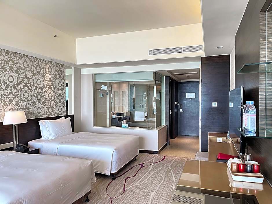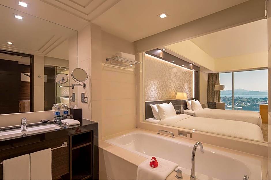 Spacious room features floor-to-ceiling windows overlooking the sea and the famous Gulangyu Island. Room is located on floors 24-25.