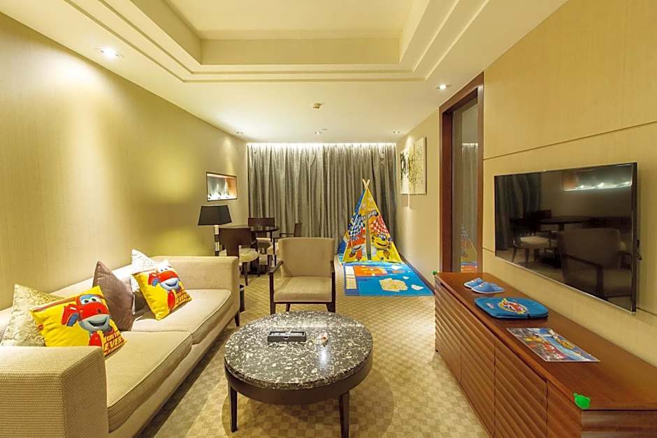 This suite has a flat-screen TV, sofa and seating area. This suite offer Executive Club Benefit: 1.Exclusive access to the Executive Club Lounge. Max 2 people per room (Complimentary soft drink for whole day),incls: Breakfast-7:00~10:30, Afternoon Tea-15:00~17:00, Happy Hour-17:30~20:00 2.Butler service(Offering consultation services during stay) 3.Enjoy 80 yuan laundry voucher per day during stay (Non-cumulative) 4.Complimentary use of Executive Club meeting room at least 2 hours in advance during stay (Non-cumulative and subject to availability) 5.Late check out extended to 14:00 (Subject to availability) 6.Complimentary local phone and fax 7.Complimentary print and copy of twenty pages 8.Complimentary use computer and laptop (Only in Club Lounge) 9.Enjoy 50 yuan hotel car coupon per day during stay (Non-cumulative) 10.Turn-down Service